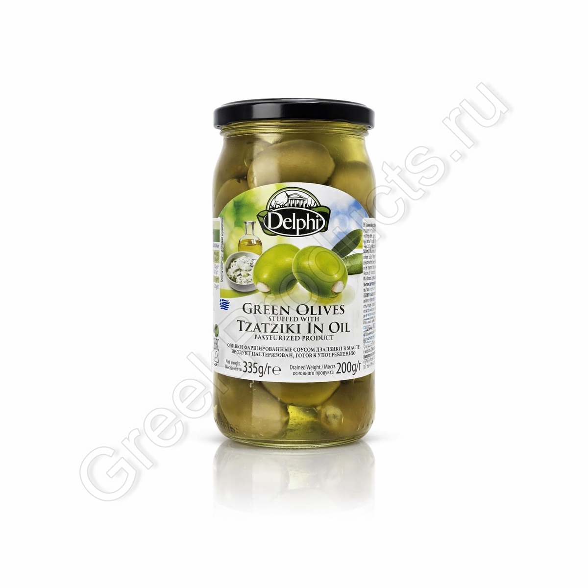 Оливки фаршированные соусом Дзадзики в масле, DELPHI 335 г