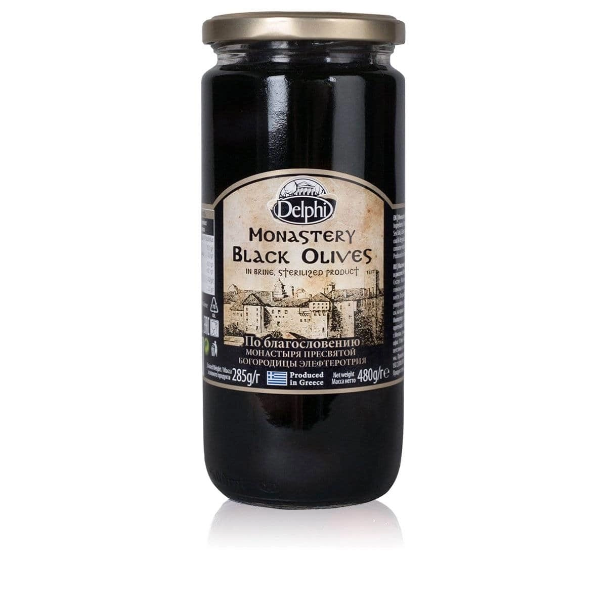 Знаменитые Маслины с косточкой в рассоле Монастырские DELPHI 480г, выращенные на территории Монастыря Богородицы Элефтеротрии, остров Крит.